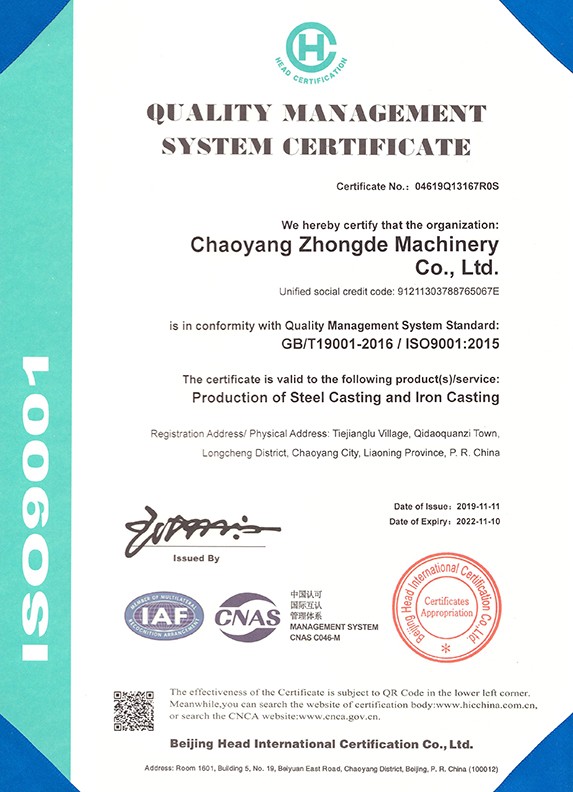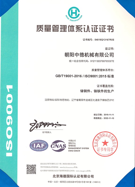 朝陽中德機械有限公司座落于有著“東方佛都”之稱的三燕古都,歷史文化名城——朝陽,具體位置朝陽市龍城區(qū)七道泉子鎮(zhèn)鐵匠爐村。公司創(chuàng)建于2006年5月是一家以鑄鋼件、鑄鐵件,集按用途設(shè)計、開發(fā)、生產(chǎn)、銷售于一體的,為機械設(shè)備配套的生產(chǎn)型公司。公司注冊資金1000萬,固定資產(chǎn)投資1480萬元,主要生產(chǎn)設(shè)備GGW-5T,GGW-10T,GGW-10T中頻感應(yīng)爐;GDY-13C高溫電阻窯、GDY-9.5C電阻窯,M4000型直讀光譜儀,DP-3985型硬度測試儀,倒置式金相顯微鏡、拉伸試驗機、超生波探傷儀,檢測手段完備。